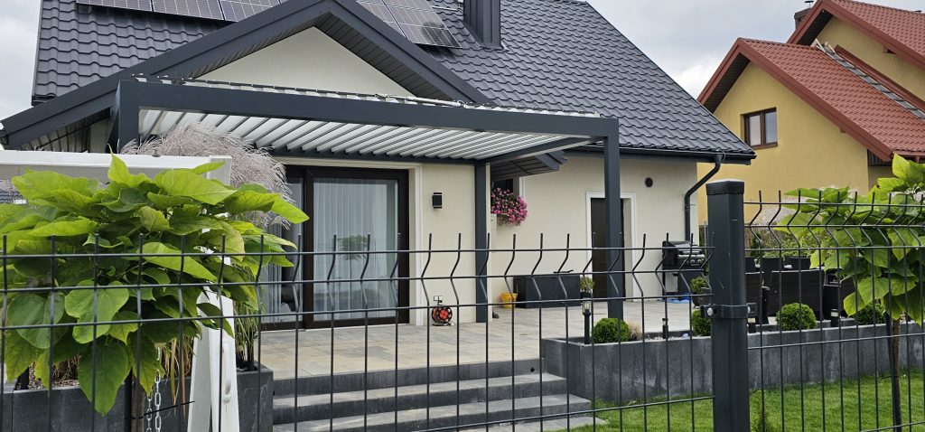 Pergole zewnętrzne stanowią skuteczną ochronę przed nadmiernym nasłonecznieniem i wysoką temperaturą. Kreując dodatkową przestrzeń wypoczynkową, tworzą w niej atmosferę prywatności i przytulności. Zautomatyzowane pergole zapewniają użytkownikom komfort nie tylko w ciągu letniego dnia. Dzięki dodatkowym opcjom wyposażenia, jakimi są oświetlenie i ogrzewanie, okres ich użytkowania może trwać niemal cały rok, niezależnie od pory dnia. Pergole bazują na solidnych konstrukcjach wykonanych z ekstrudowanego aluminium i elementów ze stali nierdzewnej, co gwarantuje wyjątkową trwałość. Wzmocnione łączenia elementów nośnych zapewniają stabilność i wysoką odporność na wiatr (6 klasa wiatrowa). Dzięki wykorzystaniu najwyższej jakości materiałów pergola będzie odporna na czynniki zewnętrzne, a tym samym nie straci na estetyce przez kolejne sezony użytkowania. Każda pergola jest wykonana pod konkretny wymiar, co daje gwarancję idealnego dopasowania do posiadanej przestrzeni. Może być wyposażona w dodatkowe elementy takie, jak czujniki pogodowe, oświetlenie LED czy promienniki.