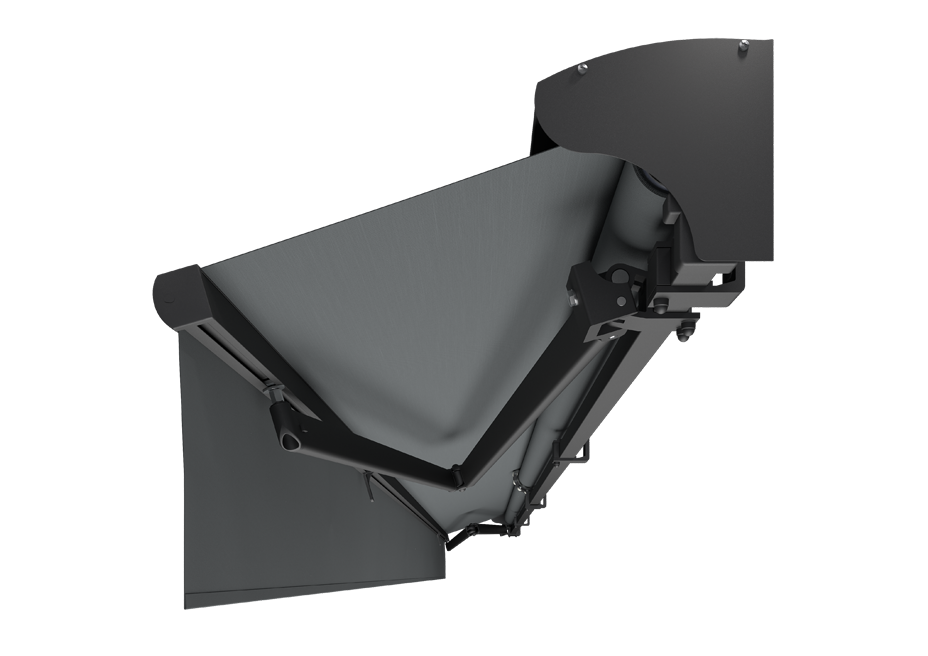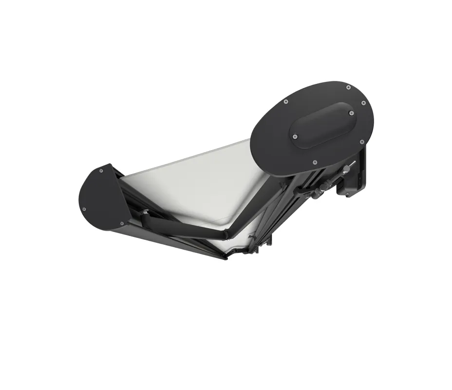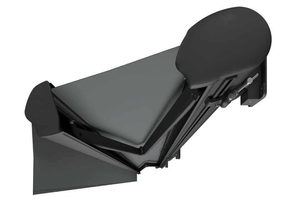 Konstrukcja markizy jest wykonana z ekstrudowanego aluminium, co gwarantuje jej wysoką trwałość, pokrywy boczne również wykonane są z aluminium. W ramionach zastosowano system łańcuchów Flyera, co gwarantuje ich niezawodną i bezpieczną pracę nawet przy dużych wymiarach markizy.
